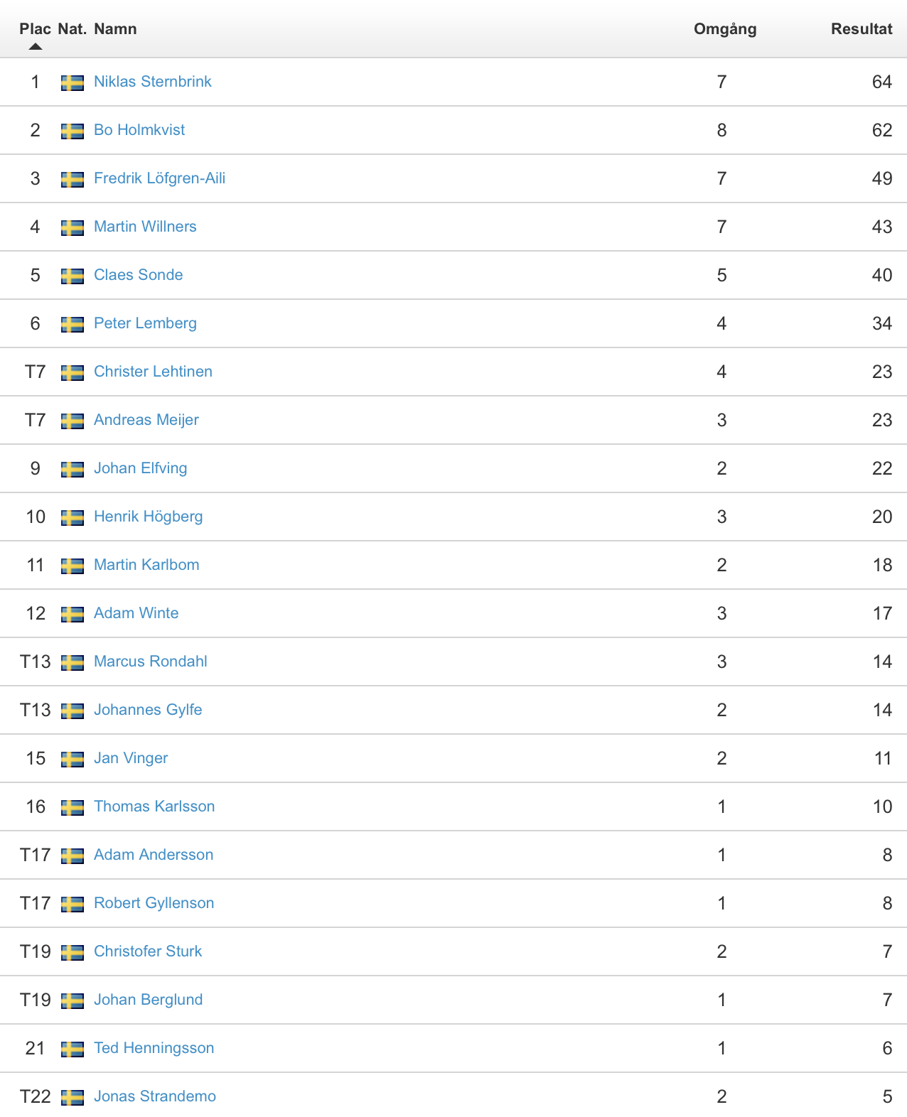 Vi hoppas på fler spelare i finalen, och dessa har fortfarande chansen att kvala in. Fyra starter (behöver en till): Johan Alin, Michael Bolle, Sami Rossi, Paul Bordier och Marcus Thuresson. Tre starter: Fredrik Löfgren-Aili, Thomas Harrysson och Johan Elfving. Två starter: Niklas Sternbrink, Christer Aberg, Andreas Meijer, Magnus Rosenstråle, Thomas Karlsson och Bo Holmkvist.