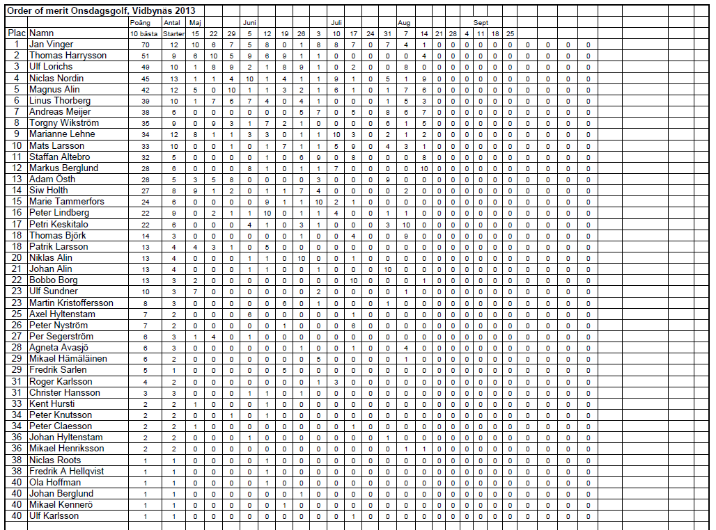 Då det har varit lite besvärligt att få resultaten publicerade på Vidbynäs-hemsidan och information varit svår för medlemmar att hitta så försöker vi istället oss på att använda en annan sida för onsdagsgolfen.
